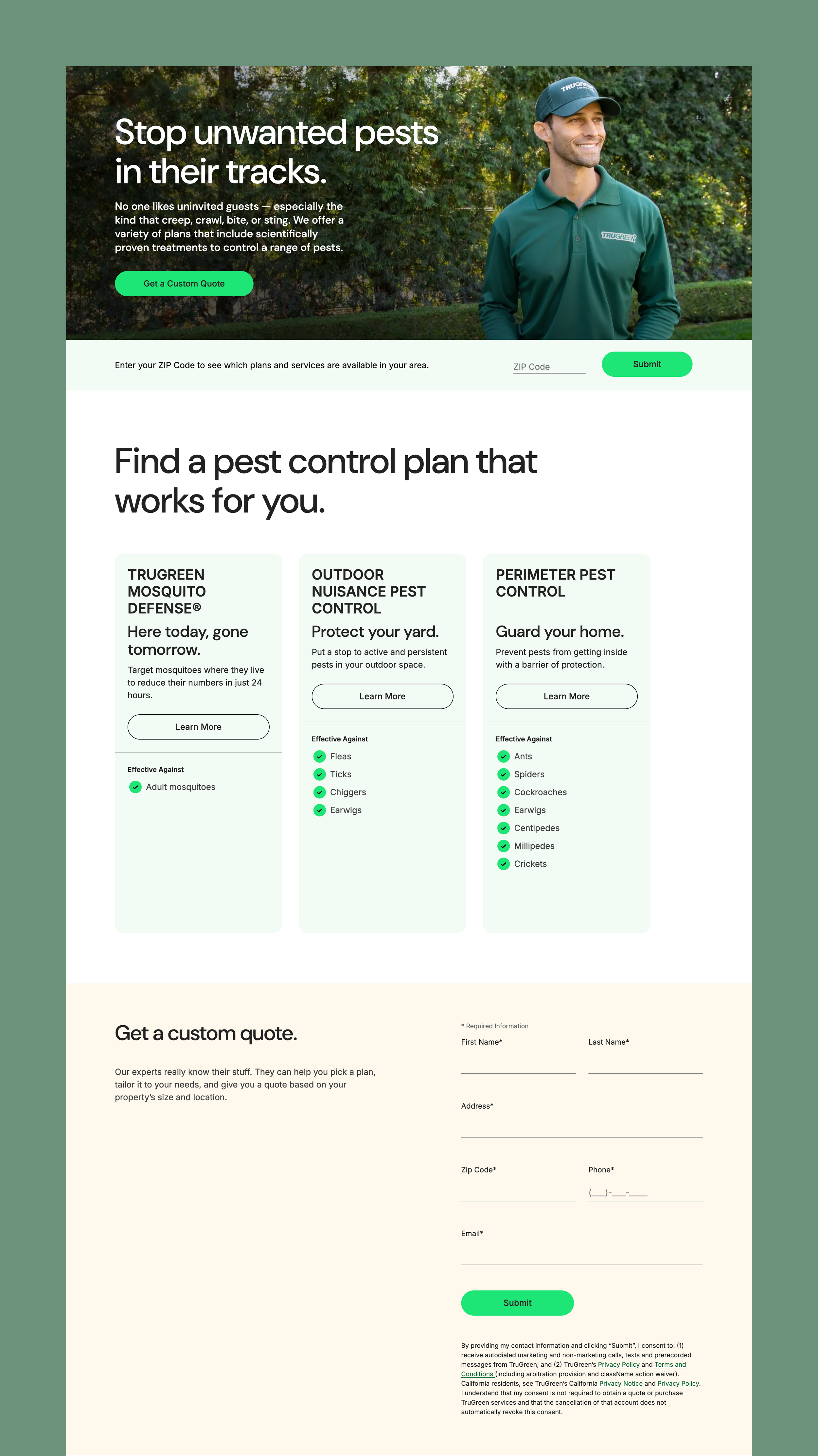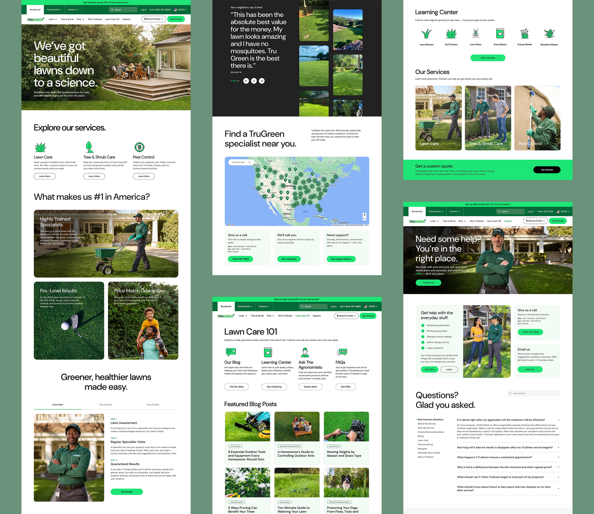TruGreen is the #1 lawn care company in the US, but it has struggled the past few years with brand sentiment and an increase in local completion. They came to AKQA to elevate the brand look and to redesign the digital experience, which included a rewrite and redesign of their main customer-facing website.